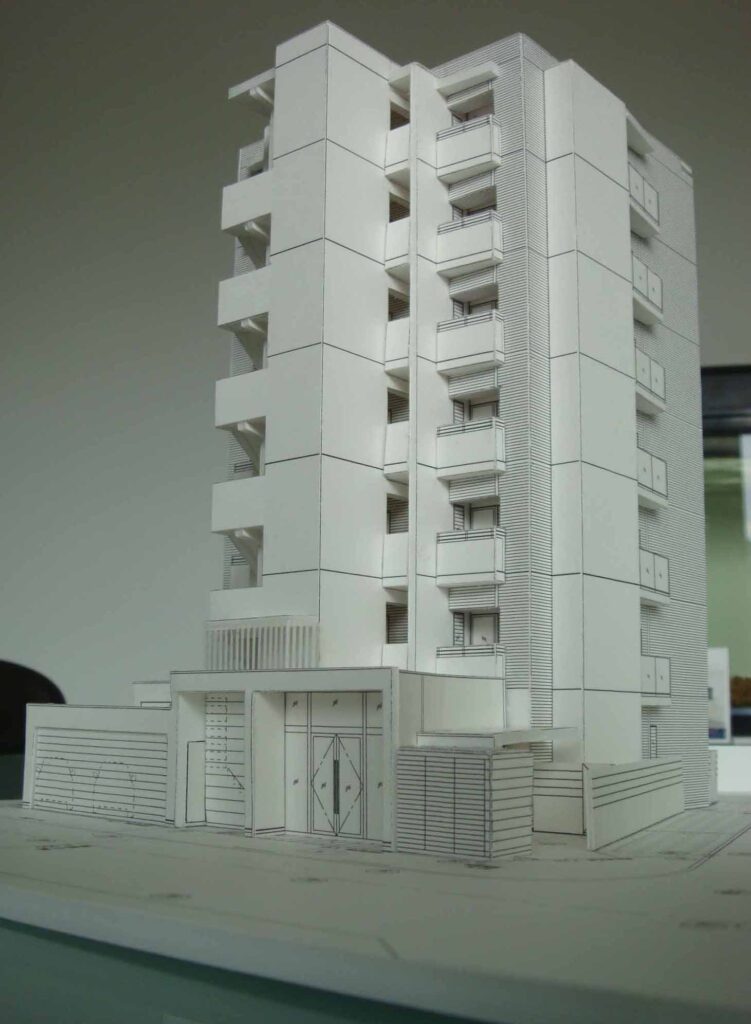模型を作成すると道路側や隣地側など各方向からどのように見えるのかがよくわかります。